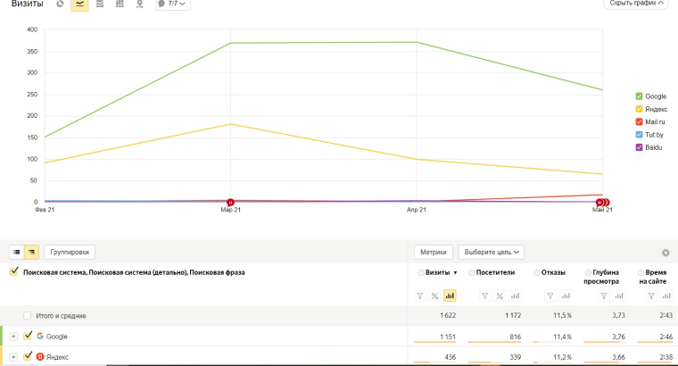 • Улучшения трафика из поисковых систем