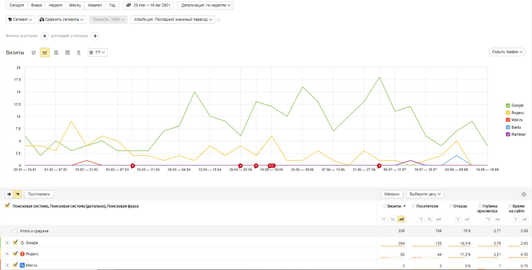 Задача была достаточно сложная из-за невысокого бюджета, наличию лишней информации и технических ошибок на сайте, неуникальных текстов, которые мешали выведению проекта на первые позиции.