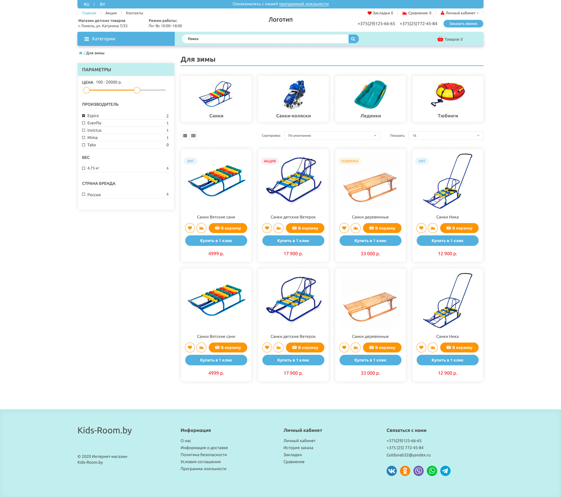 Закажите готовый продающий сайт лендинг #301 в Соликамске за 1-3 дня «под ключ»: свёрстан, отрисован и готов к рекламе. Тематика шаблона «Детские товары».