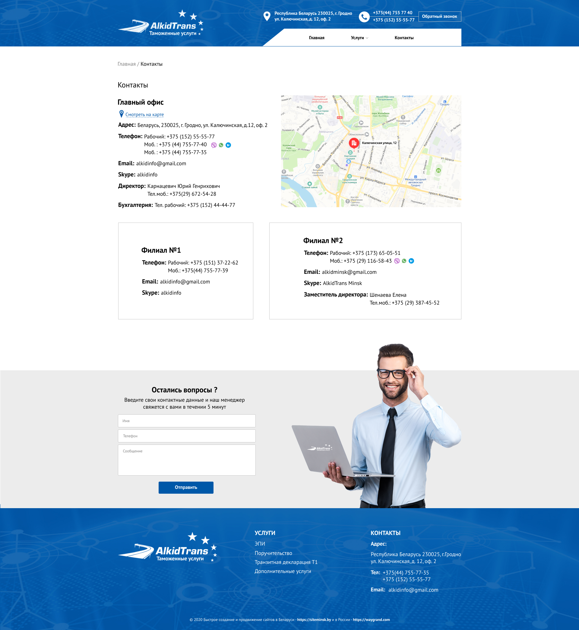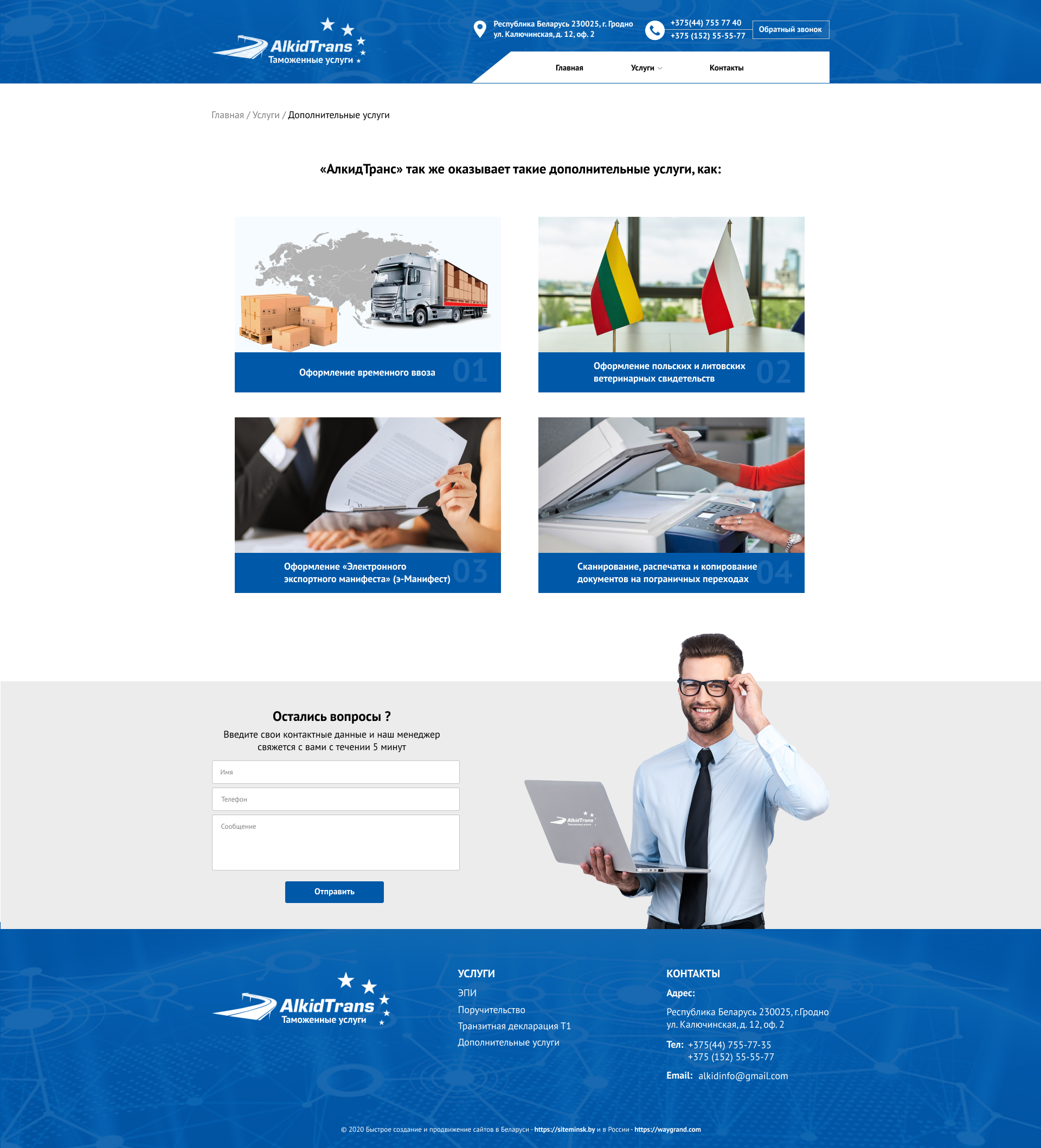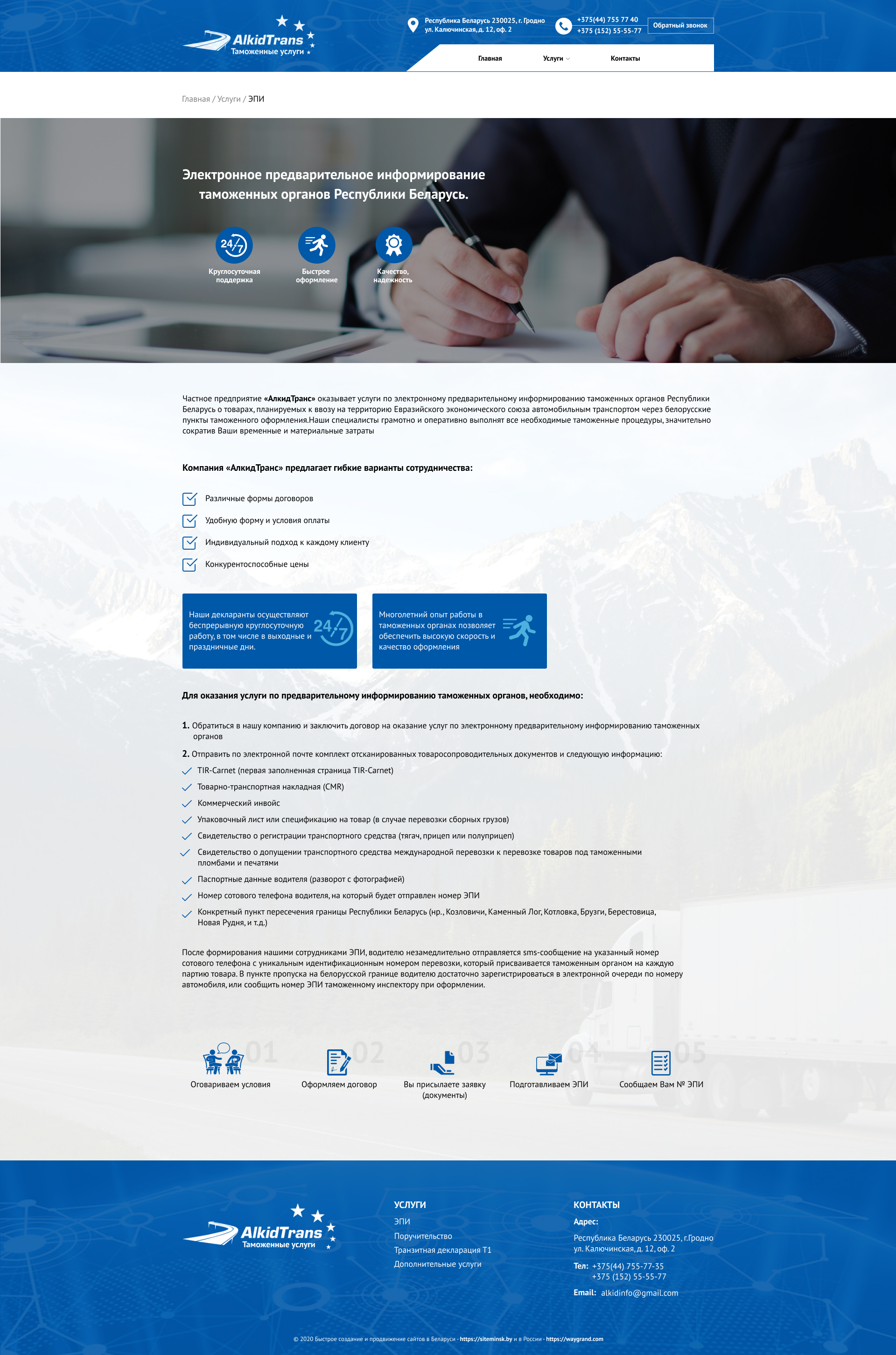 Закажите готовый продающий сайт визитка #234 в Соликамске за 5-7 дня «под ключ»: свёрстан, отрисован и готов к рекламе. Тематика шаблона «Таможенные услуги».