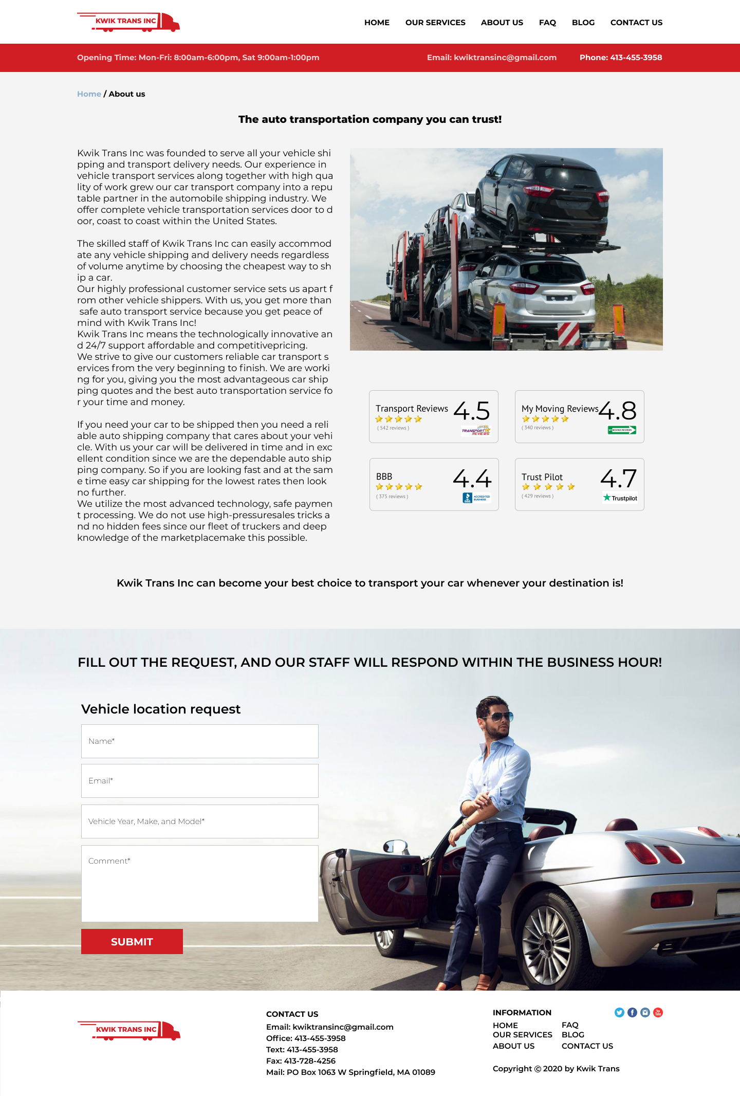 Закажите готовый продающий сайт визитка #223 в Соликамске за 5-7 дня «под ключ»: свёрстан, отрисован и готов к рекламе. Тематика шаблона «Safe & Reliable National Auto Transport».